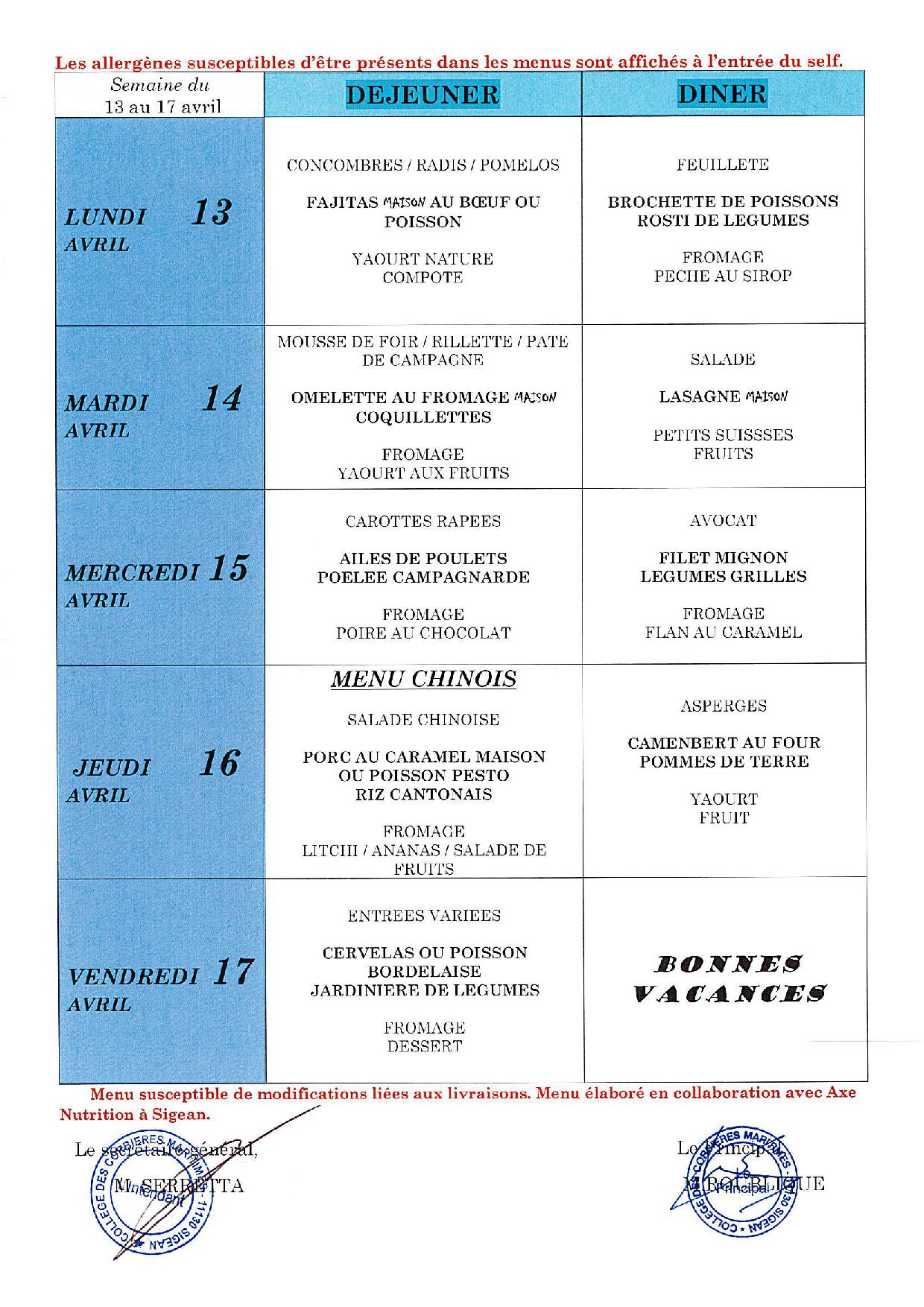 Les menus des semaines en cours ou à venir sont disponibles en téléchargement EN BAS de cette page.
